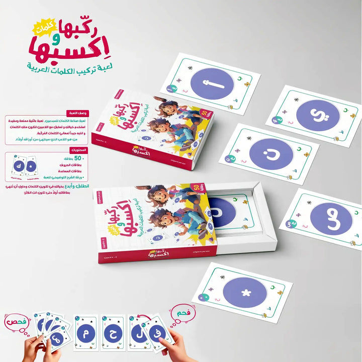 • 50 بطاقة تشمل بطاقات الحروف وبطاقات مساعدة