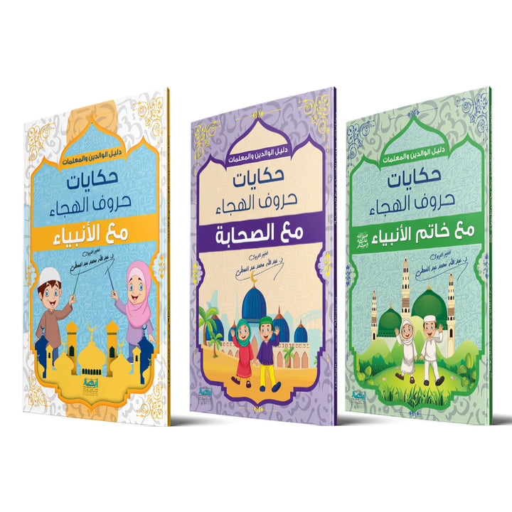 ثلاثة كتب تجمع بين متعة التعلُّم وروعة القيم، تأخذ الأطفال في رحلة شيّقة عبر الحروف، حيث يقترن كل حرف باسم نبي أو صحابي أو موقف من سيرة خاتم الأنبياء ﷺ.
