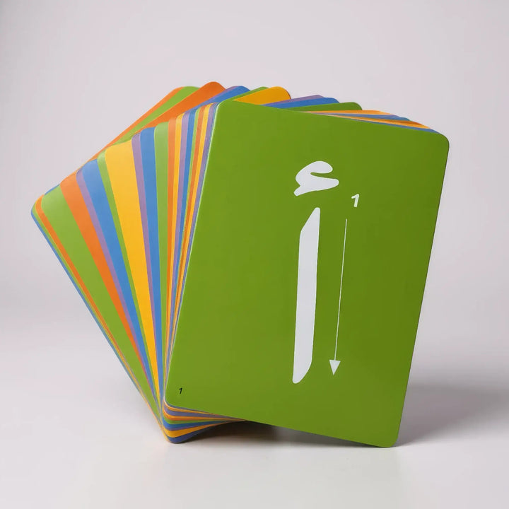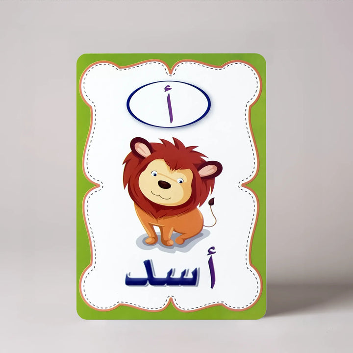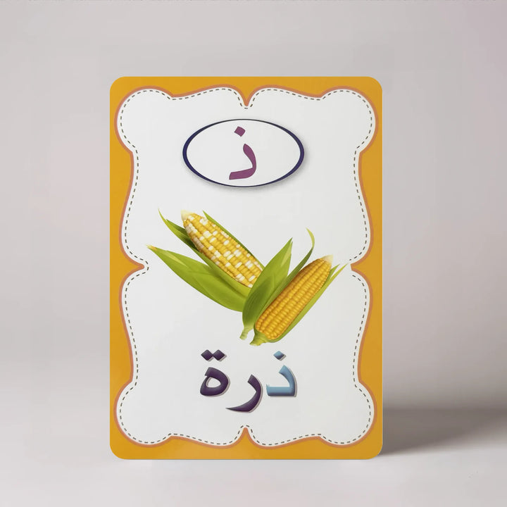 • بطاقات تشمل جميع الحروف العربية (28 بطاقة مزدوجة الوجه).
