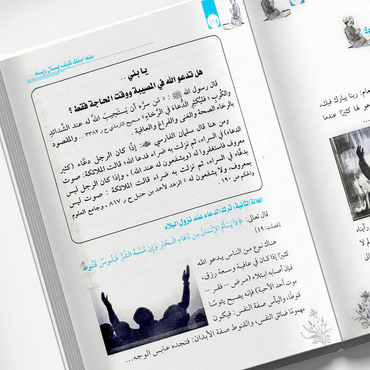 الكتاب يعلمك أولًا كيف تسأل الله، ثم يرشدك كيف تنقل هذا العلم إلى ابنك ببساطة ووضوح ومحبة.