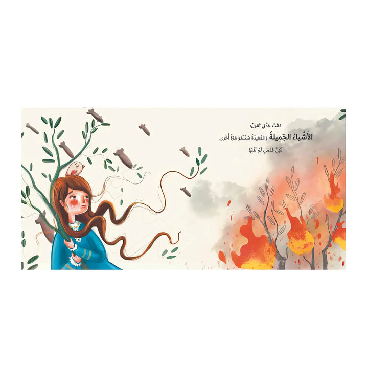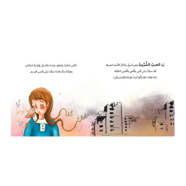 إِنَّها الحربُ الشِّرِّيرةُ، وَهِيَ تَسْرِقُ مِنَّا كُلَّ الأَشْياءِ الجَميلةِ.