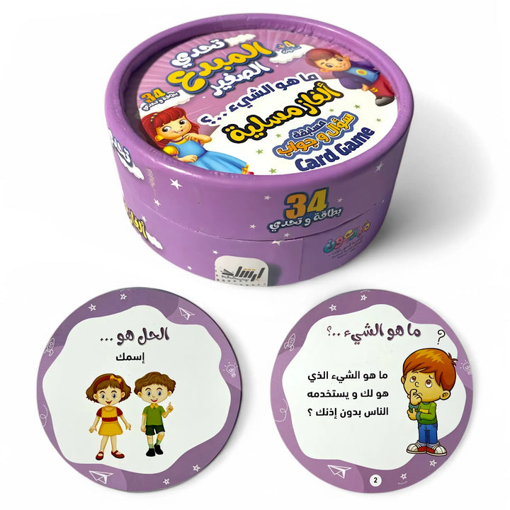 🎯 تحتوي المسابقة على 34 بطاقة، تحمل كل بطاقة سؤالًا في أحد وجهيها وإجابته في الوجه الآخر.