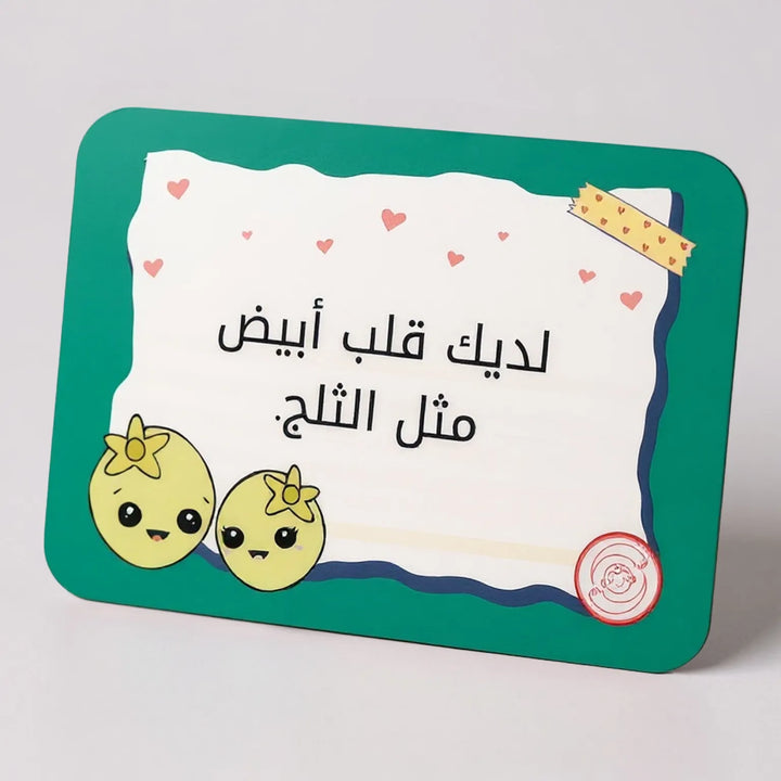 بطاقات «لانش بوكس» هي مجموعة مميزة من الكروت اليومية المصممة بعناية لتُرافق وجبة طفلك المدرسية بكلمة دافئة، رسالة حب، أو عبارة تشجيعية، تزرع في قلبه شعورًا بالأمان والثقة والارتباط العاطفي.