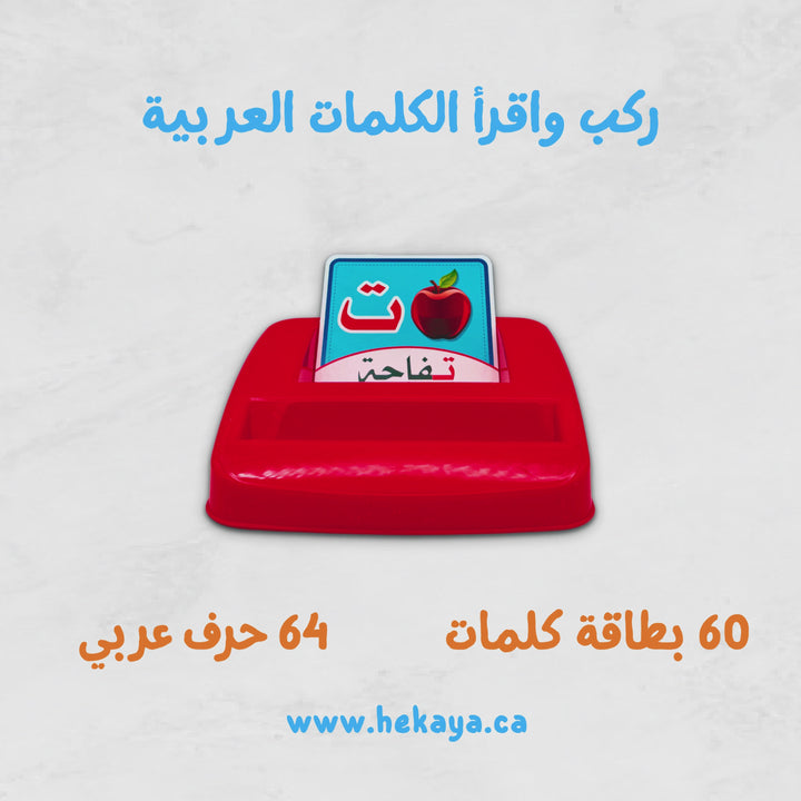 هو نشاط تعليمي يهدف إلى تطوير مهارات الأطفال في تركيب الكلمات العربية. يحتوي على 64 قطعة بلاستيكية تمثل الحروف العربية، بالإضافة إلى 60 بطاقة مطبوعة على الوجهين تحتوي على كلمات وأساليب تعليمية متنوعة.